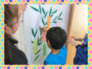 来年は教室に大きな本物の笹を用意してたくさんの短冊を飾りつけられるようにしたいと思います。