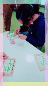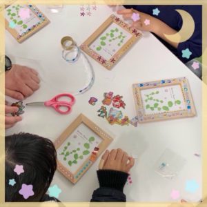 美味しい料理を食べた後はみんなでフォトフレームづくりをしました。